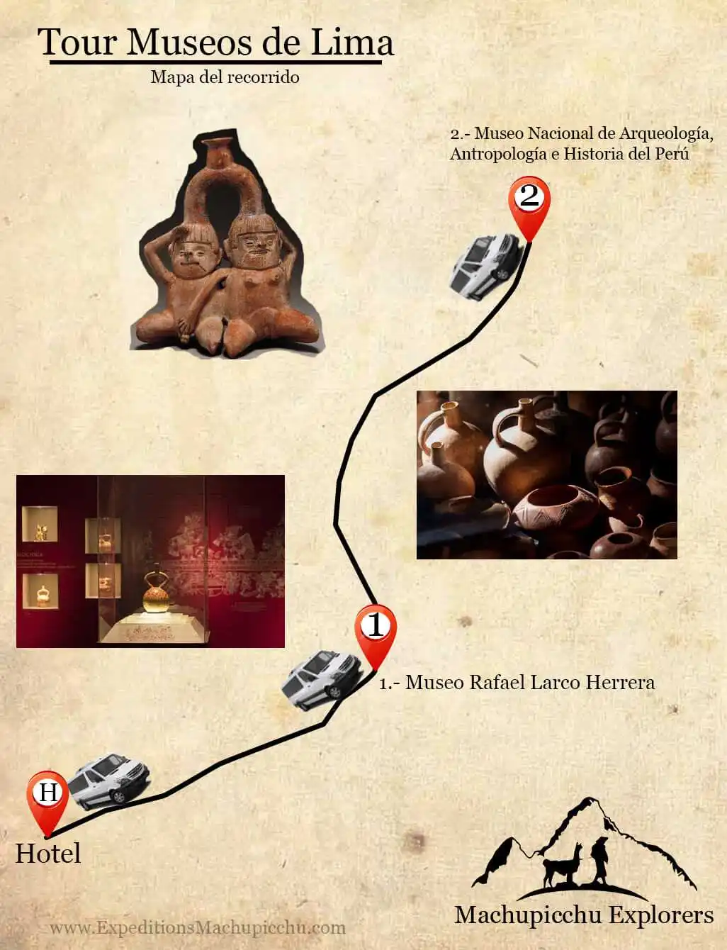 Un tours para los amantes de la historia del Perú donde conoceremos los museos de lima como el museo Rafael larco asi como el museo nacional de Arqueología, Antropología e Historia del Perú
